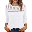 Women's Round Neck Top Lace Hollow Breathable All-match Long Sleeve White XL