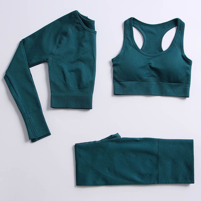 Women's Seamless Long Sleeve Trousers Yoga Suit Dark green S