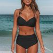 Women's Seaside Swimwear Cross Strap Solid Color Split Swimsuit Bikini Army Green XXL