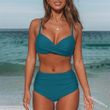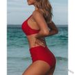 Women's Seaside Swimwear Cross Strap Solid Color Split Swimsuit Bikini Brick red XL