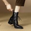 Women's shoes 2026 autumn and winter new leather thick heel pointed lace up short boots women's retro Chelsea short boots