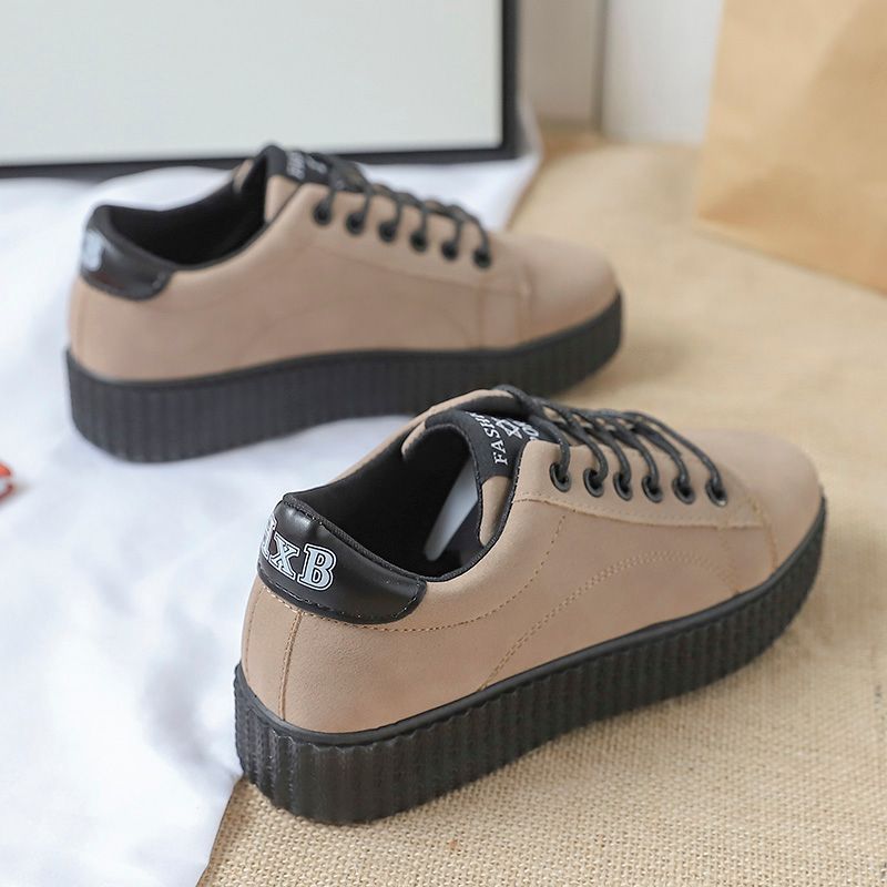 Women's Shoes Student Sports Thick Sole Shoes Khaki 37