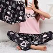 Women's Short Sleeve Crew Neck Top With Shorts And Pants 3 Piece Loungewear Sleepwear Lounge Sets Nighty Print Casual Pajama Set