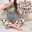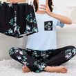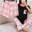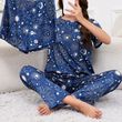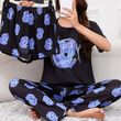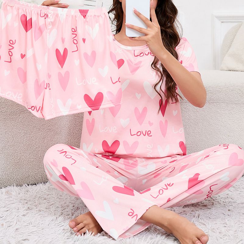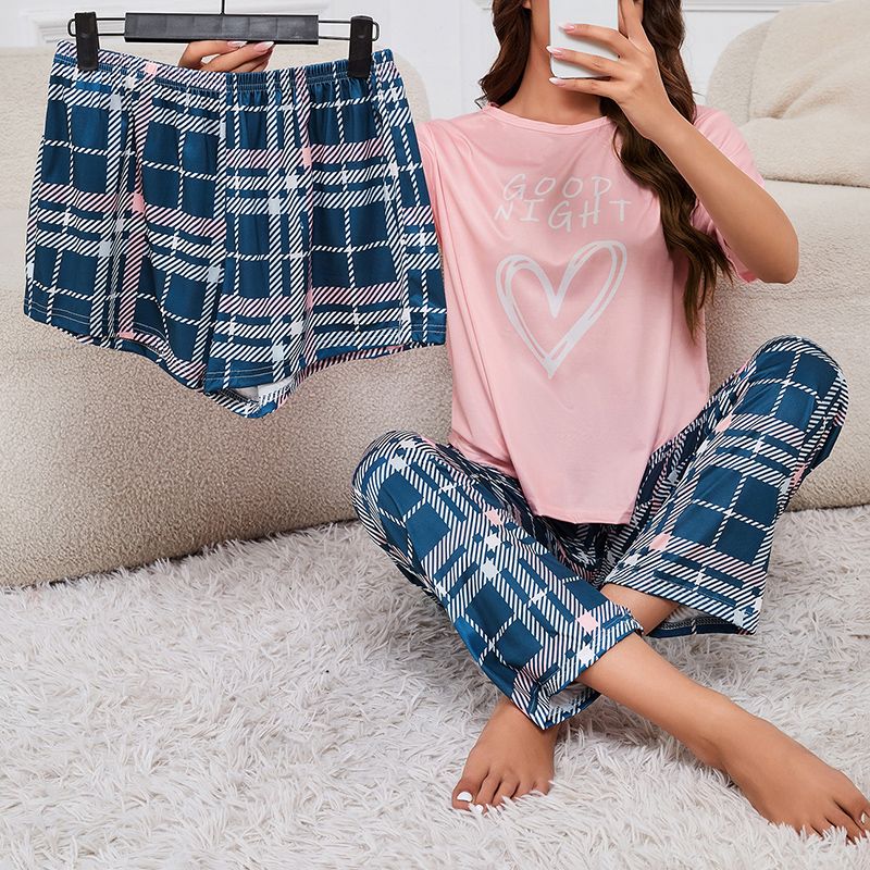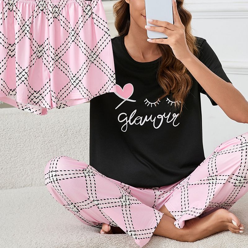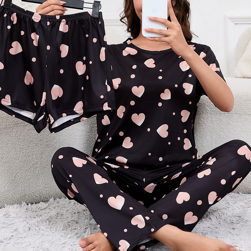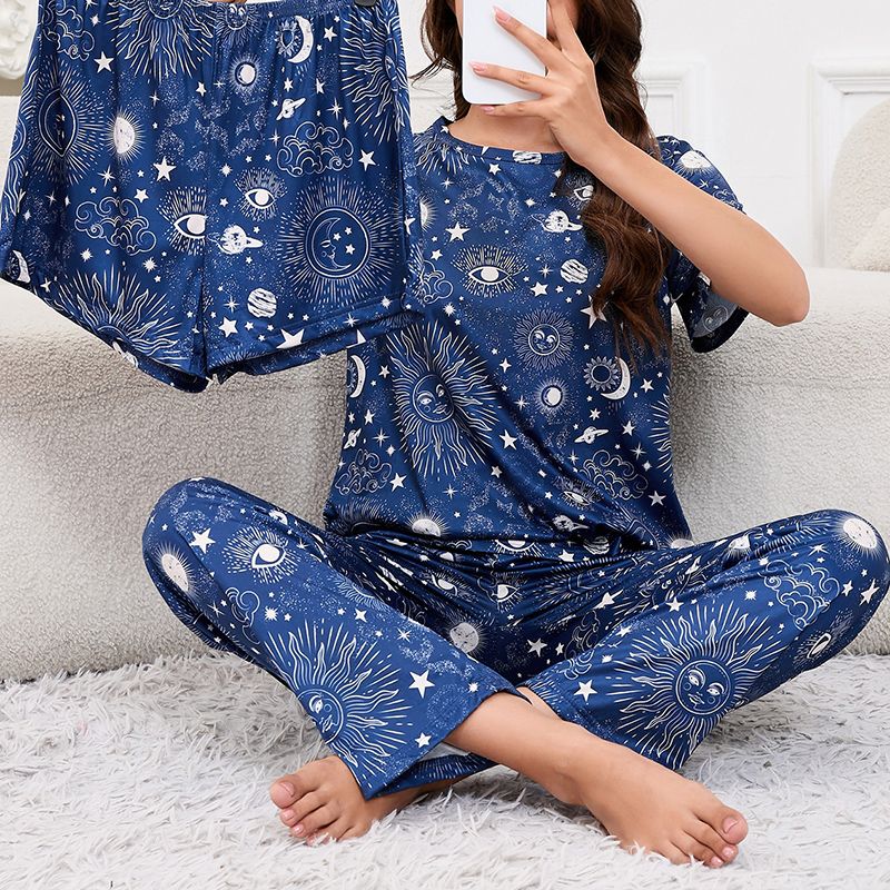 Women's Short Sleeve Crew Neck Top With Shorts And Pants 3 Piece Loungewear Sleepwear Lounge Sets Nighty Print Casual Pajama Set