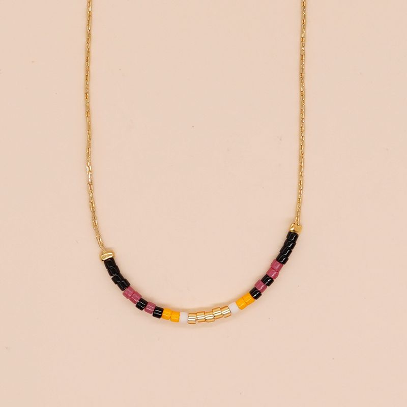 Women's Simple Gold Thread Fine Rice Bead Necklace A