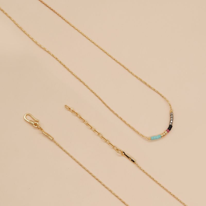 Women's Simple Gold Thread Fine Rice Bead Necklace R