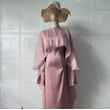 Women's Slim-fit Long Sleeve Tied Luxury Silky Dress Pink 2XL