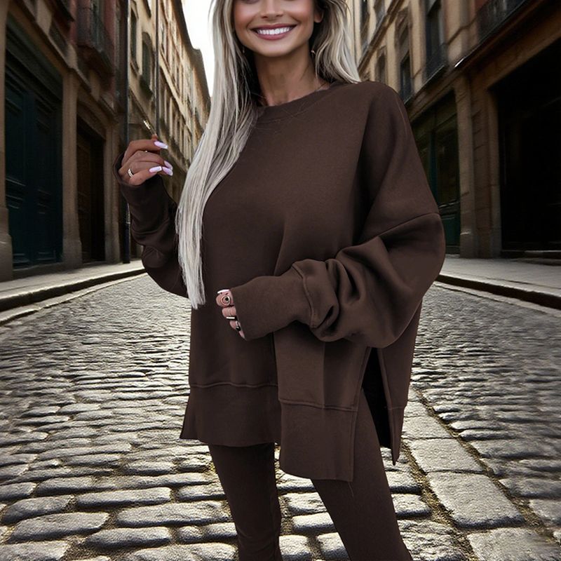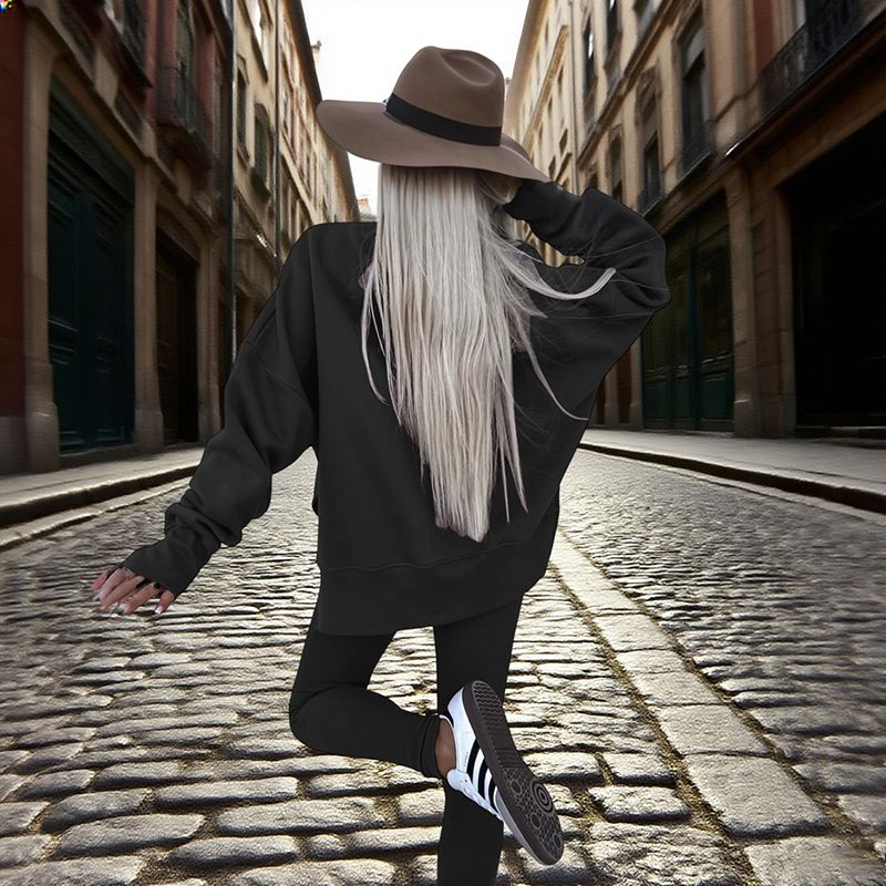 Modern Design Details: The sweatshirt features fashionable side slits at the hem, elevating a basic top into a trendy statement piece.