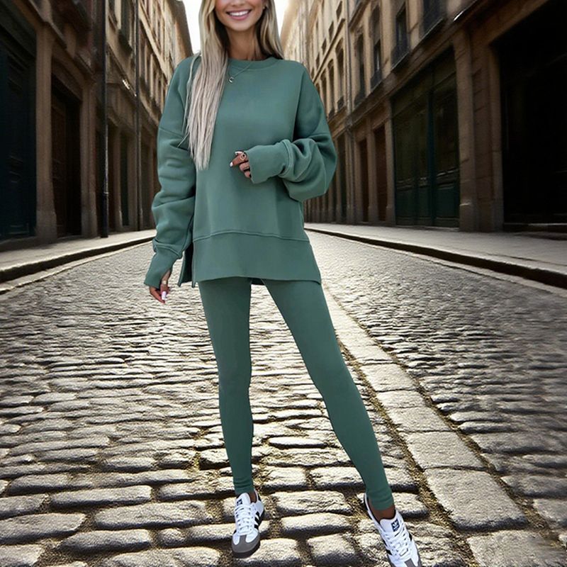 Women's Solid Color 2-Piece Set Casual Tracksuit, Long Sleeve Crewneck Sweatshirt With Side Slits & Slim Fit Jogger Pants