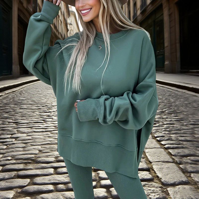 Modern Design Details: The sweatshirt features fashionable side slits at the hem, elevating a basic top into a trendy statement piece.
