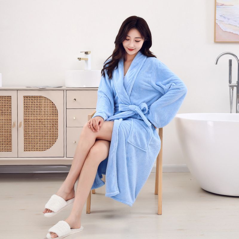 Women's solid color lapel bathrobe autumn and winter models facecloth warm and comfortable long-sleeved robe homewear