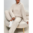 Women's Solid Color Plush Hooded Long Sleeve Trousers Suit Apricot 2XL