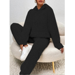 Women's Solid Color Plush Hooded Long Sleeve Trousers Suit Black L