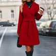 Women's Solid Color Polo Collar Lace Up Double Breasted Long Trench Coat Khaki 2XL
