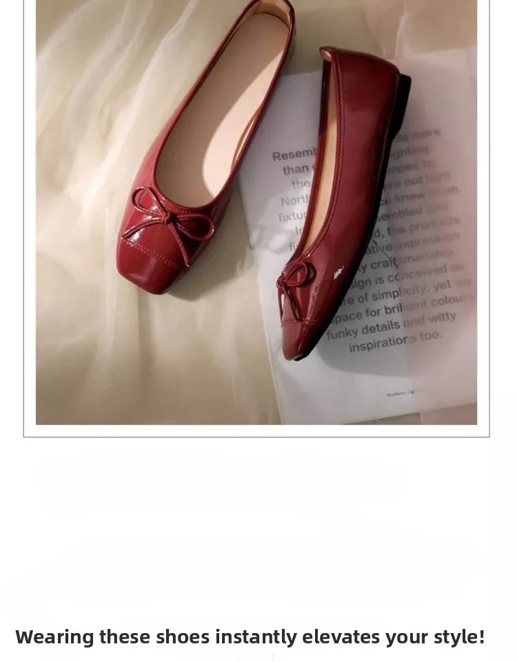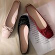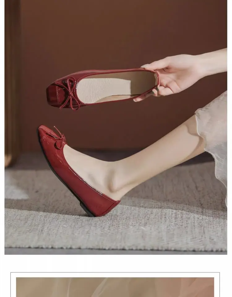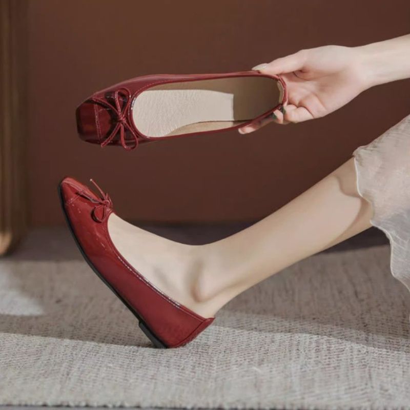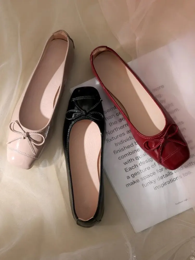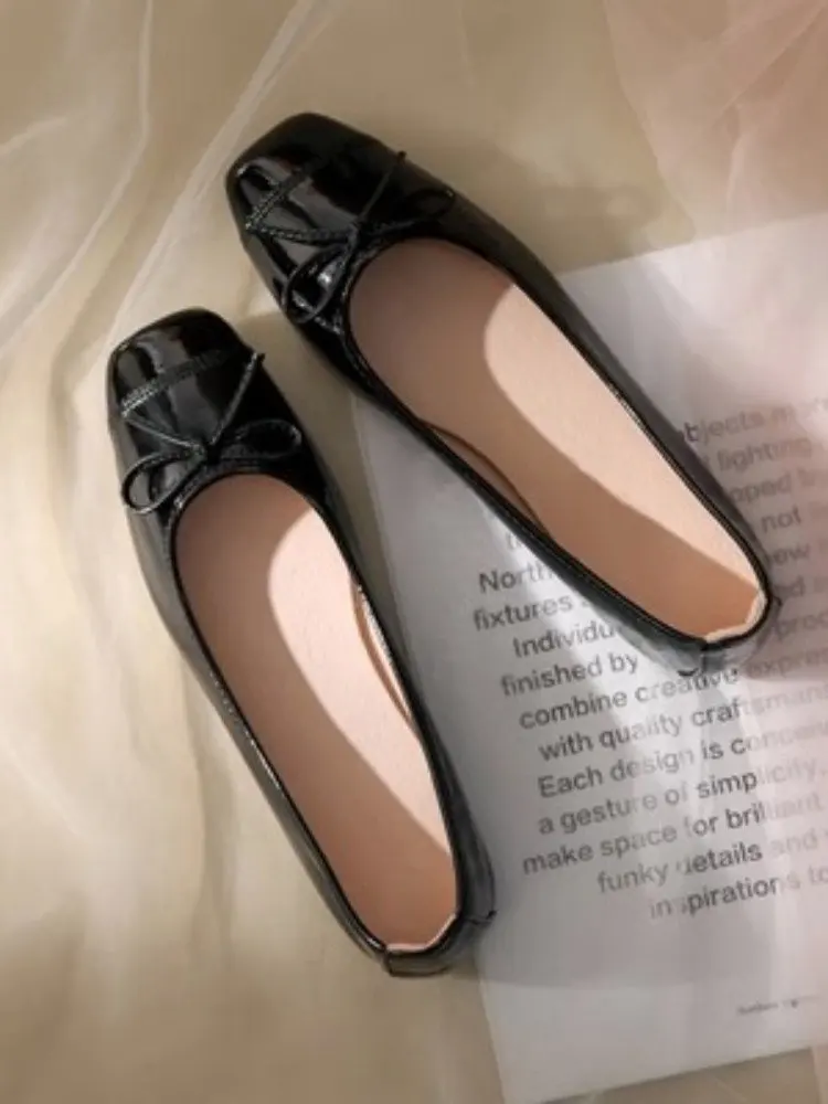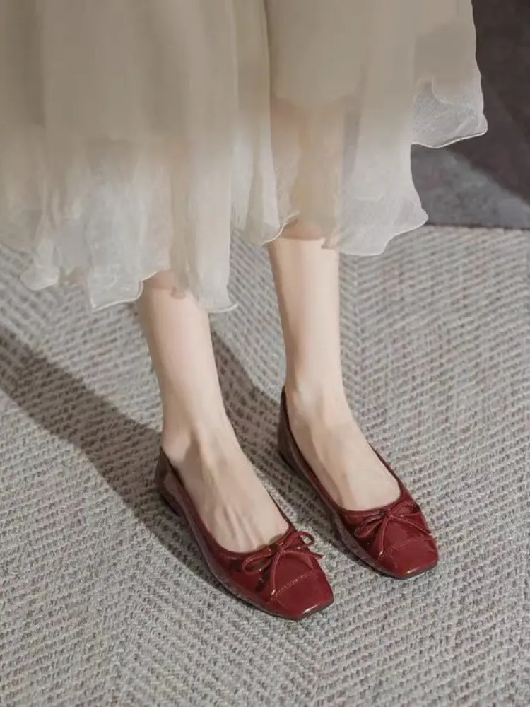 Women's Solid Color PU Mary Jane Flats, Bow Decor Low-Top Shoes, Rubber Cracked Square Toe Comfort Casual Daily Wear Footwear