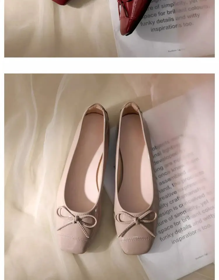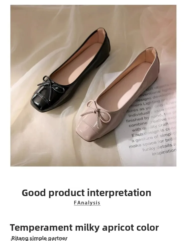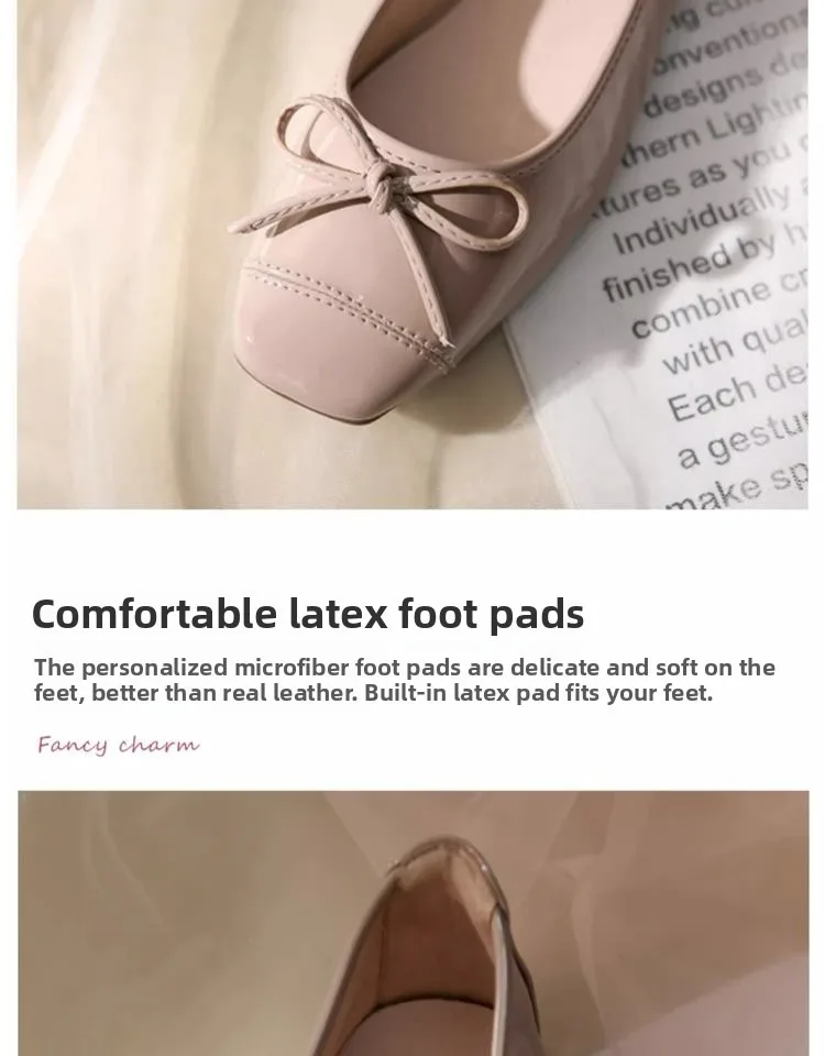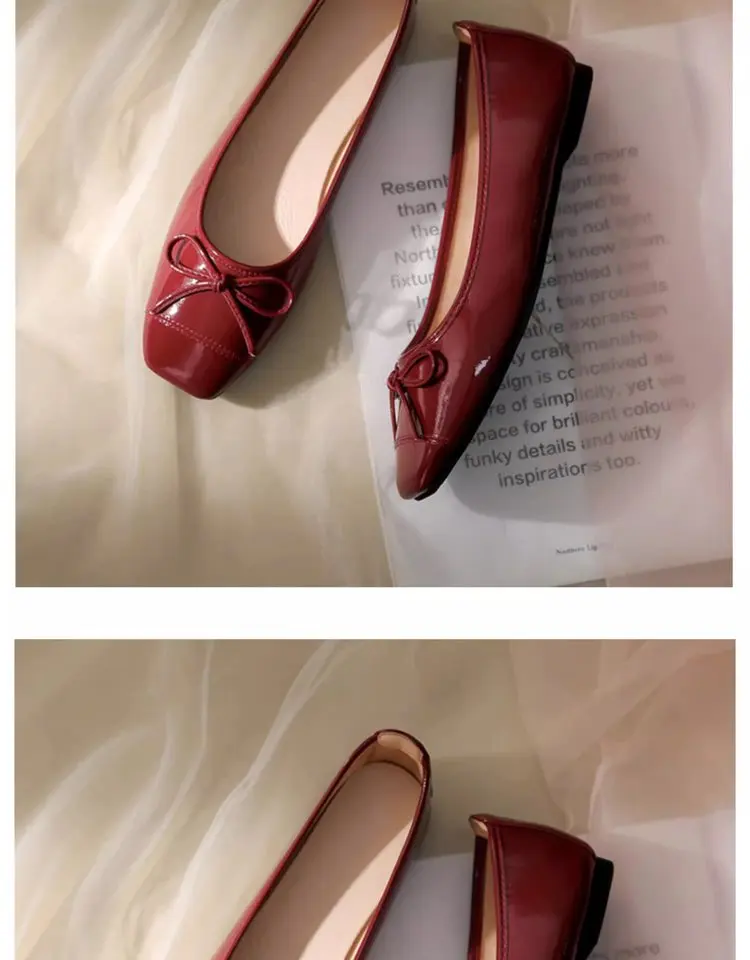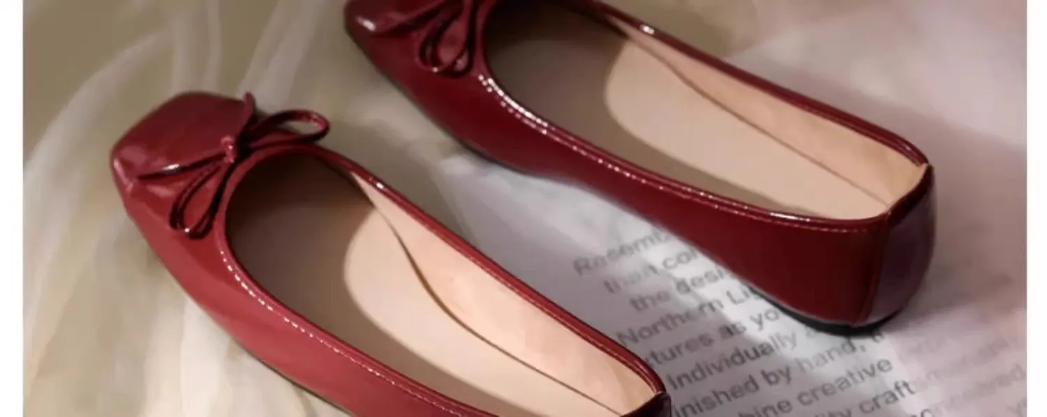 Women's Solid Color PU Mary Jane Flats, Bow Decor Low-Top Shoes, Rubber Cracked Square Toe Comfort Casual Daily Wear Footwear