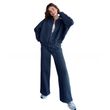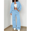Women's Sports Suits Zipper Jacket And Wide Leg Pants Two-piece Set OFF White 2XL