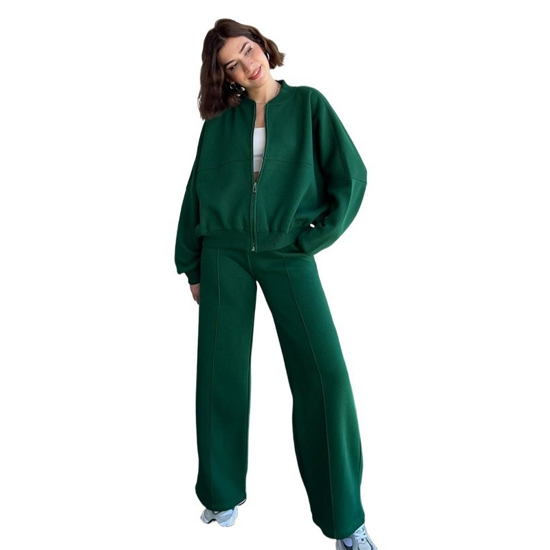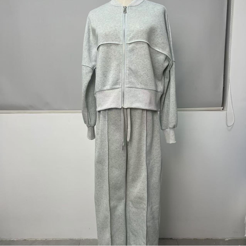 Women's Sports Suits Zipper Jacket And Wide Leg Pants Two-piece Set Silver gray 2XL