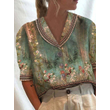 Women's Stand Collar Button Casual Half-sleeve Cotton And Linen Printed Short-sleeved Shirt 4 Color 3XL