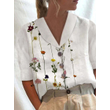 Women's Stand Collar Button Casual Half-sleeve Cotton And Linen Printed Short-sleeved Shirt 8 Color XL