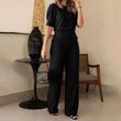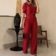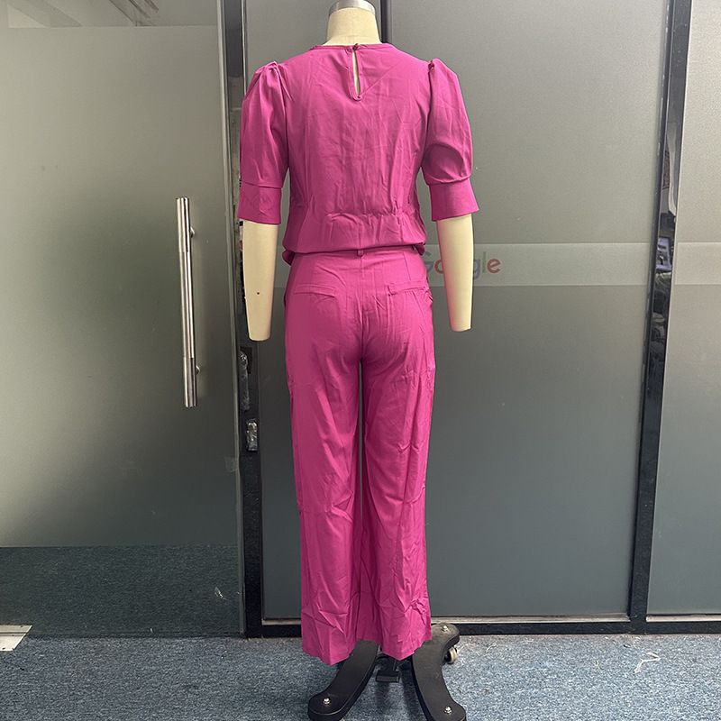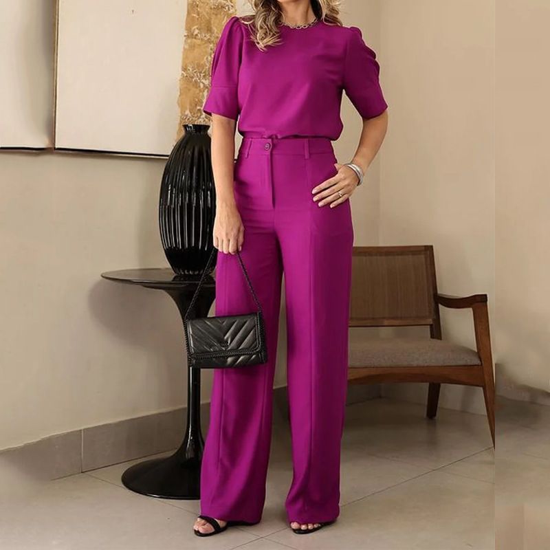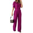 Women's Suit Casual Loose Short Sleeves Trousers Two-piece Set Purple 2XL
