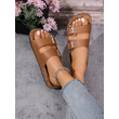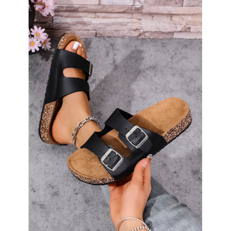Women's Summer and Spring/Autumn Casual Simple Buckle Cork-Patterned Adjustable Pu Upper Flat Slip-On Double-Strap Sandals Beach Slippers for Home and Outdoor Use