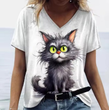 Women's Summer Cat Print Casual Short Sleeve Round Shirt Loose Clothing 5style 2XL