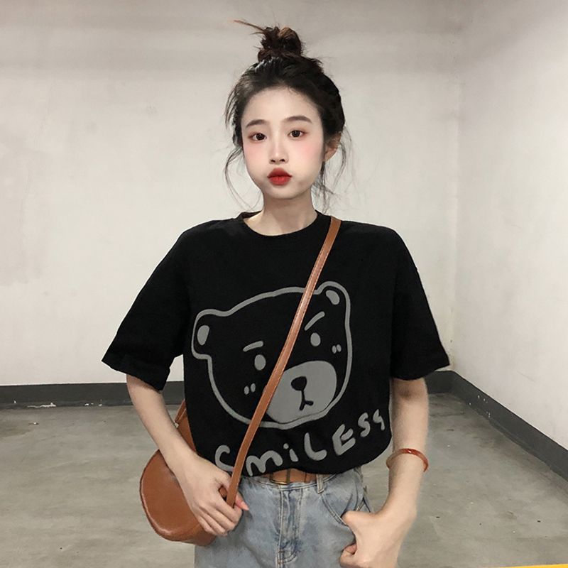 Women's Summer Pure Cotton Casual Sleeve T-shirt Black1 One size