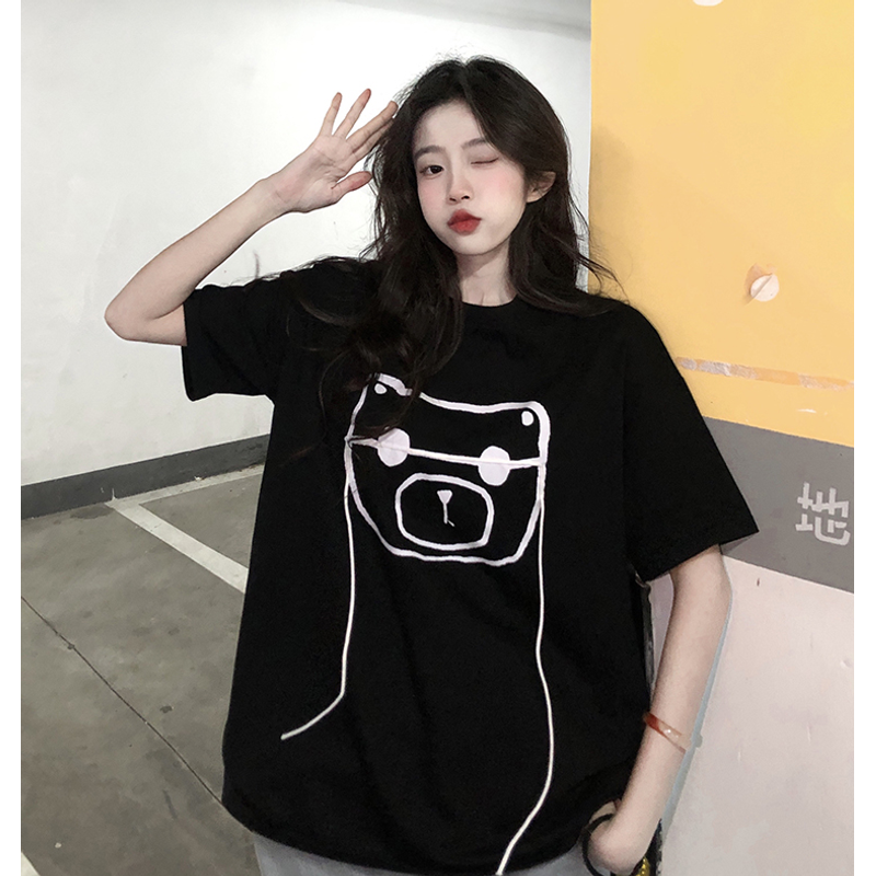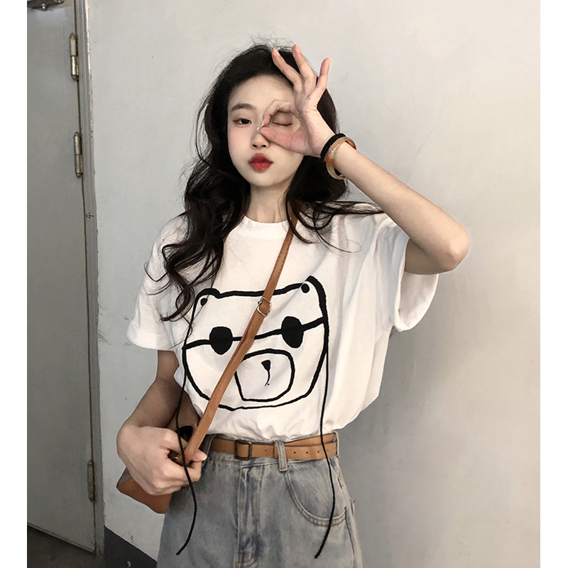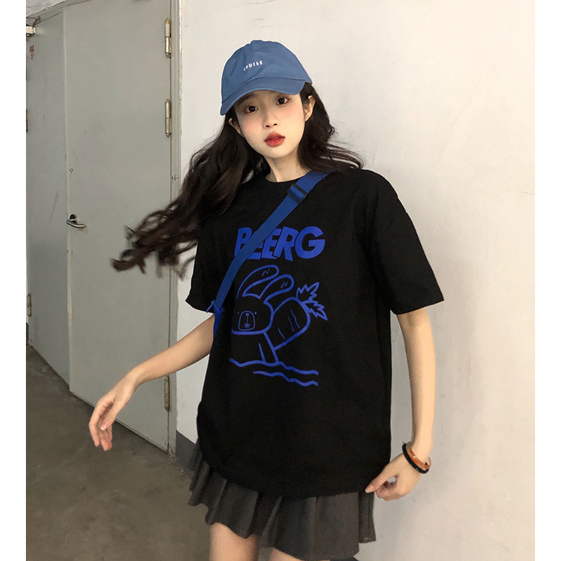 Women's Summer Pure Cotton Casual Sleeve T-shirt Black3 One size
