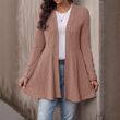 Women's Sunken Stripe Brushed Cardigan Casual Top Apricot 2XL