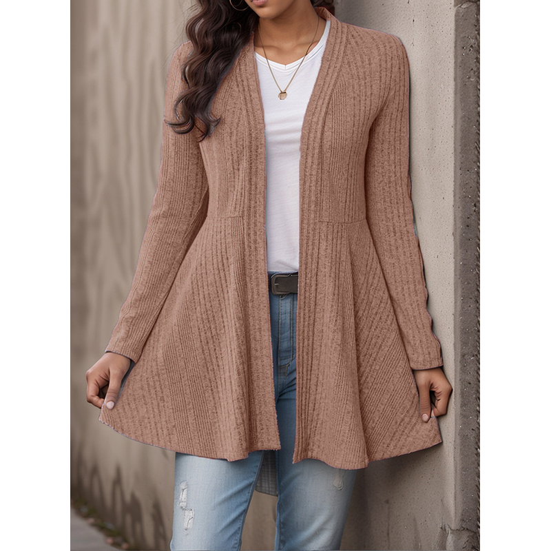 Women's Sunken Stripe Brushed Cardigan Casual Top Watermelon Red XL