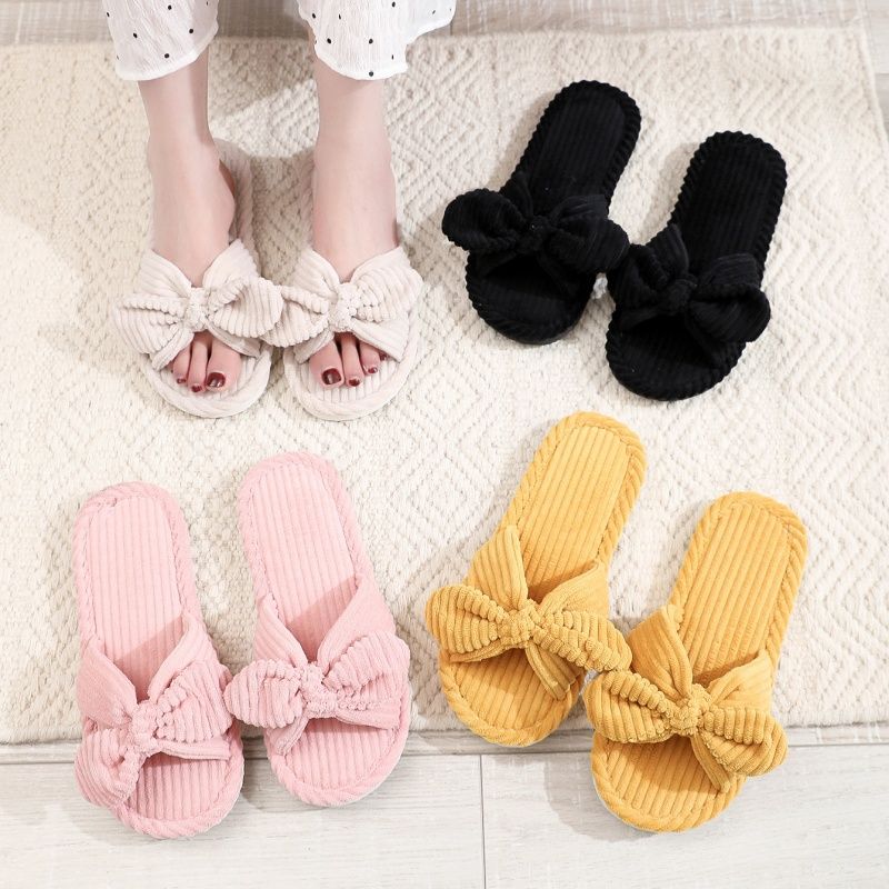 The bow detailing adds a feminine touch to these otherwise simple slippers, making them a stylish addition to any outfit.
