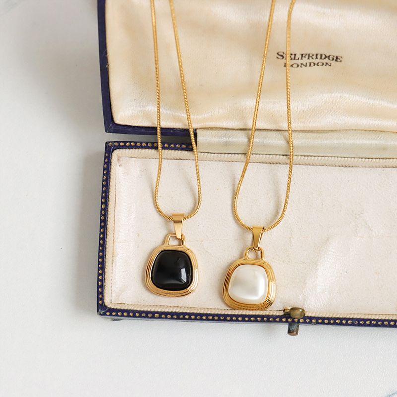 Color: Gold Black Faux Pearl Necklace