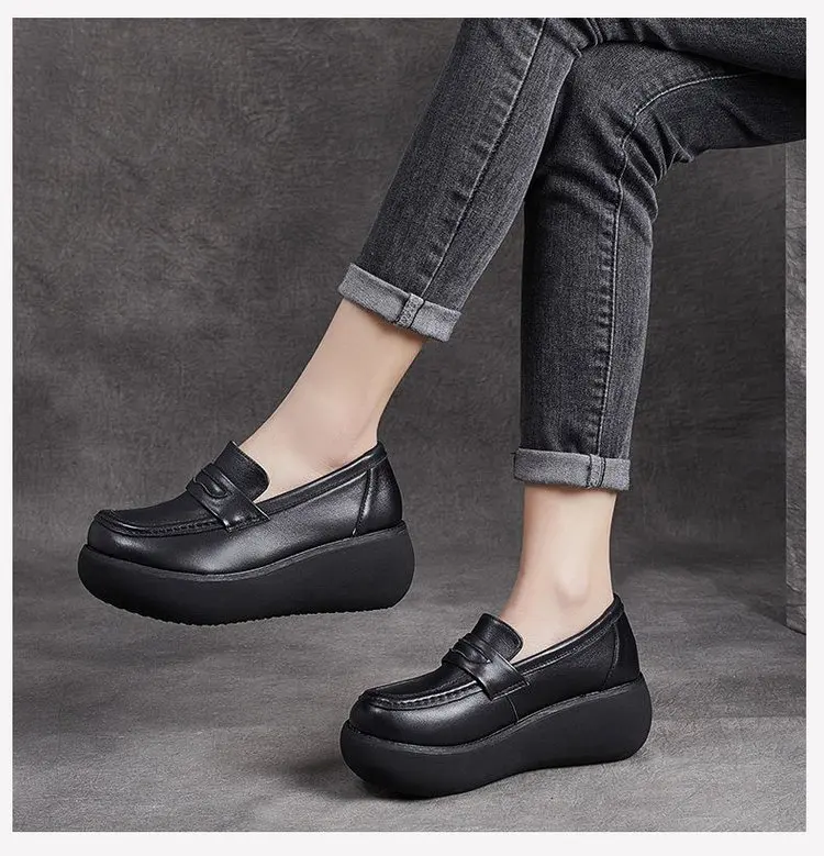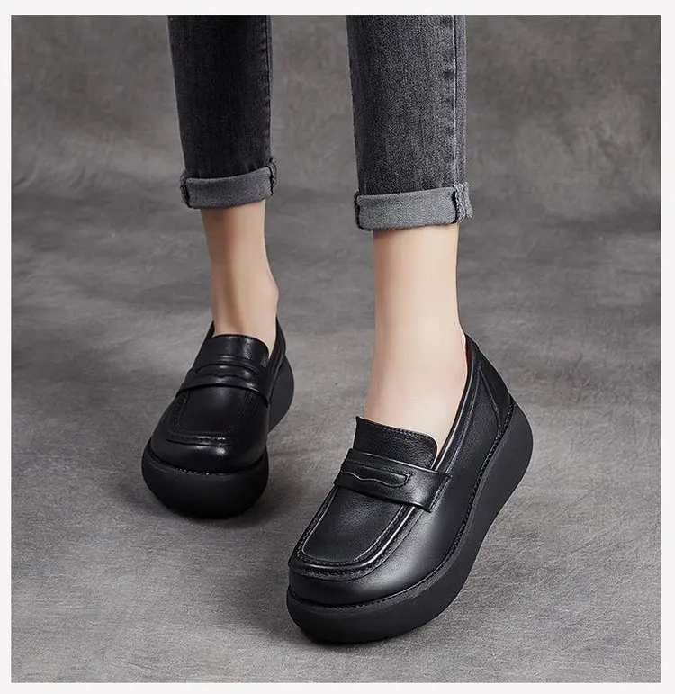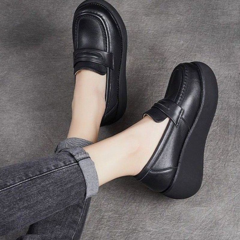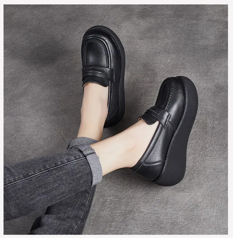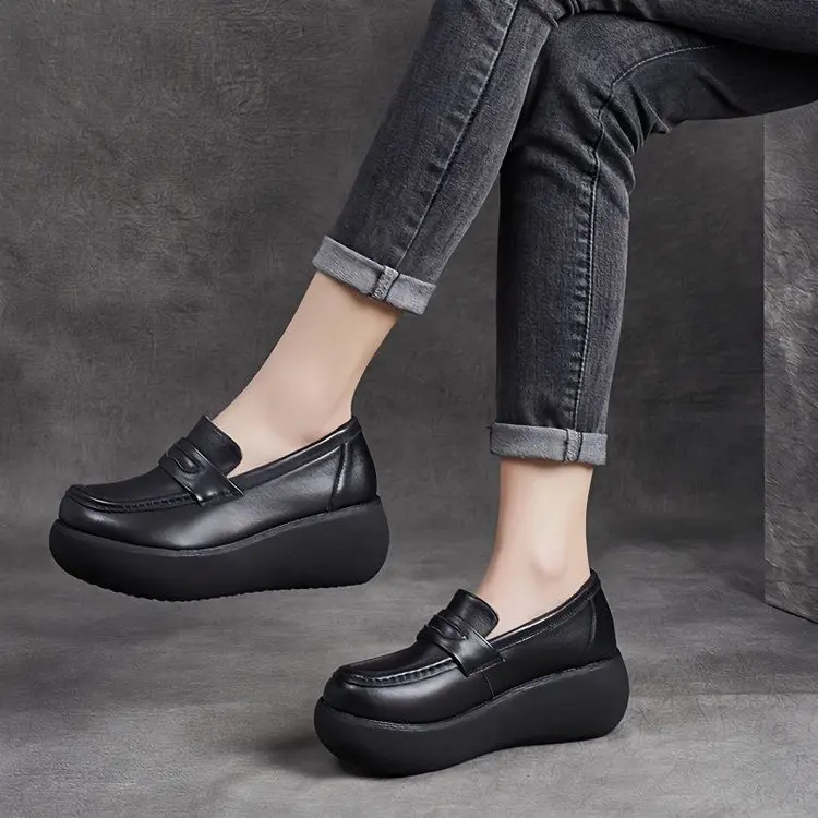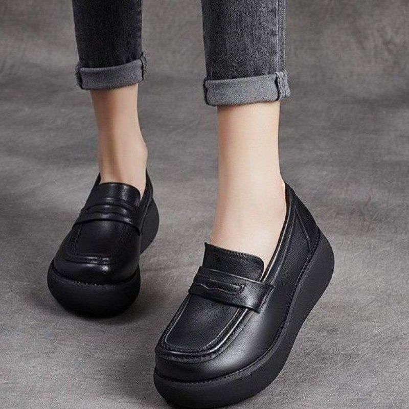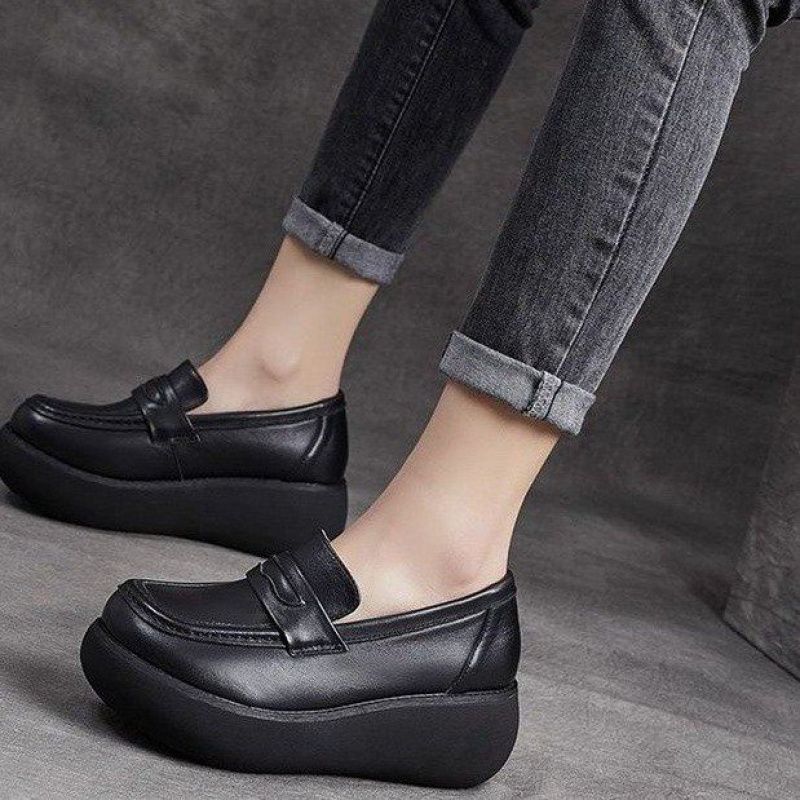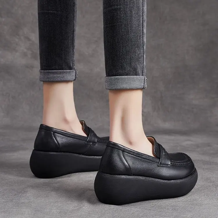 Women's Thick-Soled Loafers2026New Spring and Autumn Season Black Versatile Platform ShoesjkBritish Style Small Leather Shoes