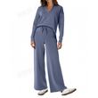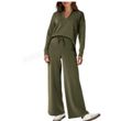 Women's Tracksuit Sports Suit V-neck Long-sleeved Pullover Top And Drawstring Straight-leg Trousers Casual Solid Trousers Set Dark Khaki XXXL