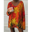 Women's V-neck Three-quarter Sleeve T-shirt Orange 2XL
