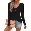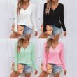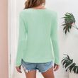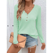 Women's Waffle V-neck Buttons Long-sleeved T-shirt Light Green L