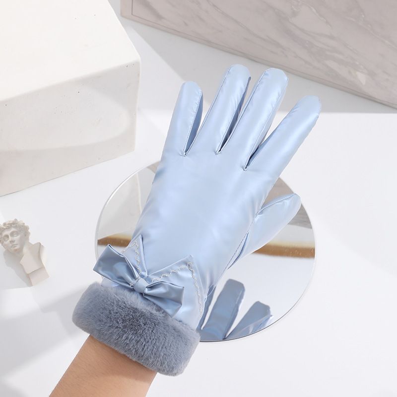 Women's Warm Thickened Velvet Gloves Blue Snowflake One size