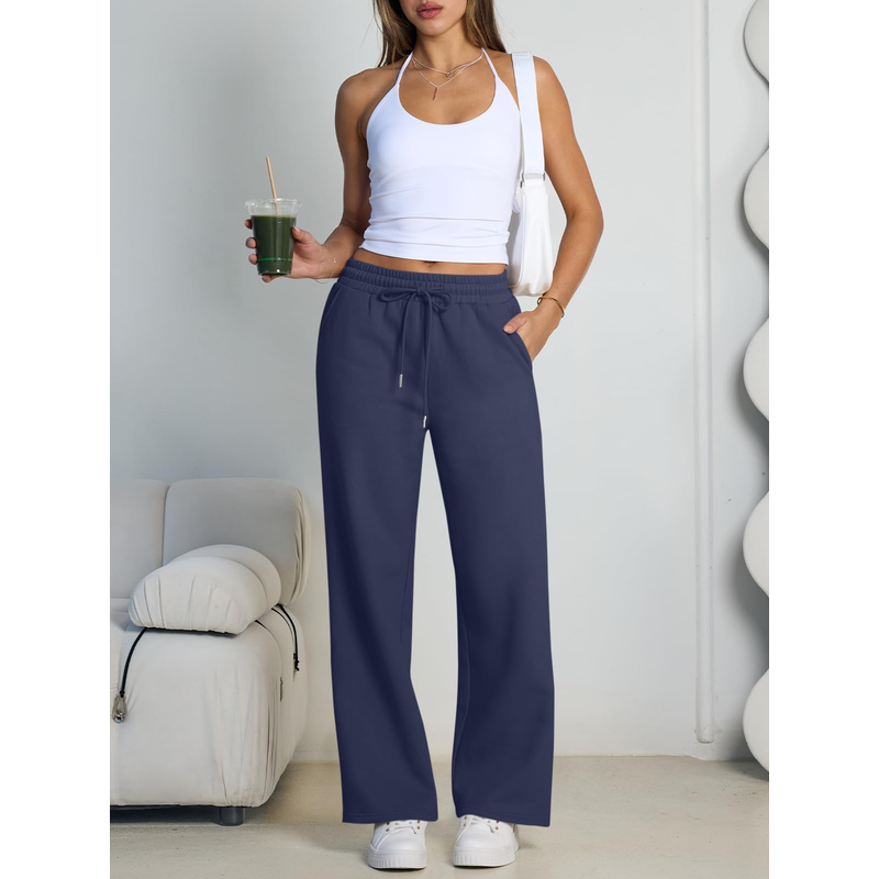 Women's Wide Leg Pants European and American women Fleece sweatpants,waist drawstring straight leg loose dance casual trousers