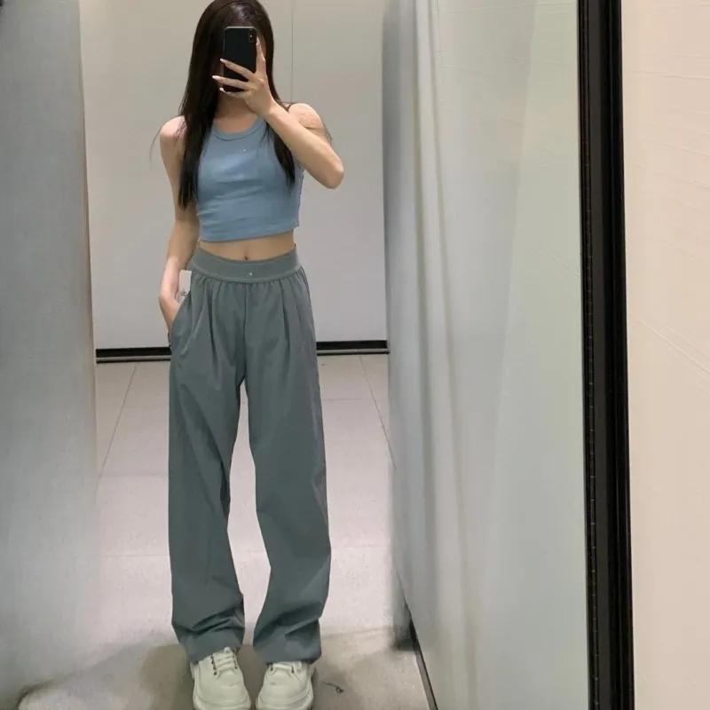 Women's Wide Leg Pants Loose Casual Thin Sports Yoga Trousers Elastic Waist Solid Fitness Running Straight Sweatpants Women