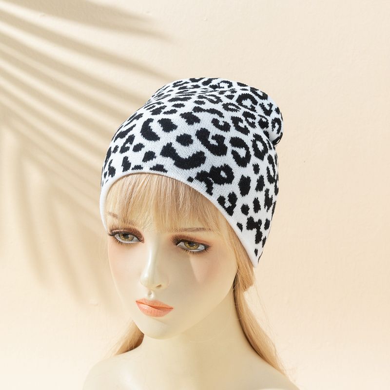 Women's Wild Casual Retro Leopard Zebra Print Cow Houndstooth Knitted Hat Black And White Leopard Print M