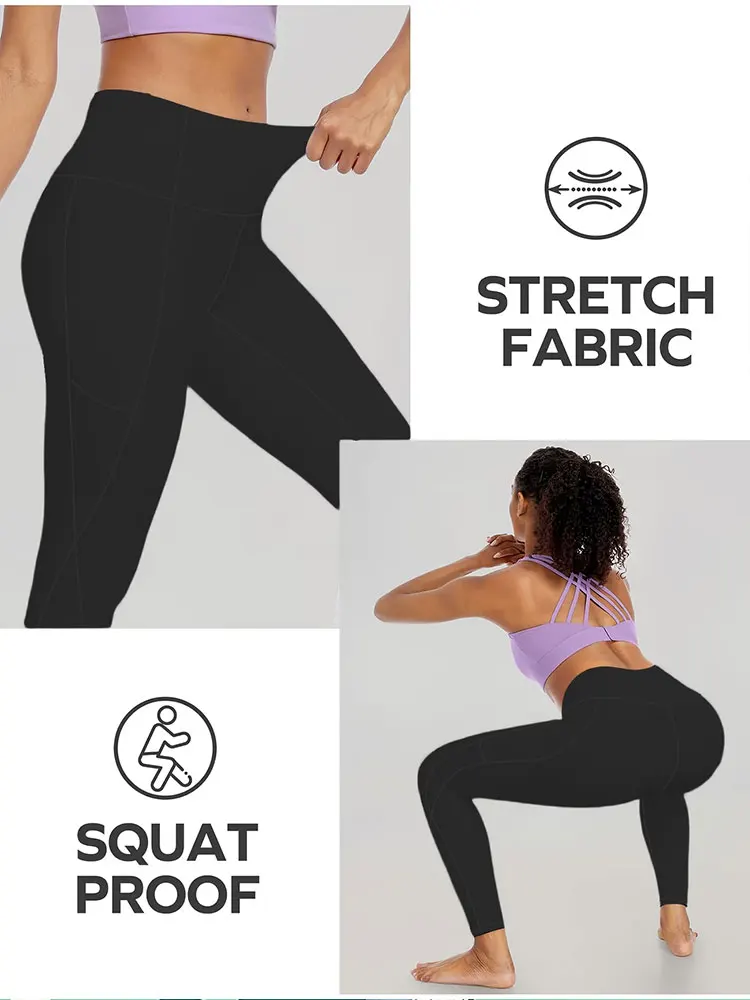 Women's Yoga Leggings With Pockets High Waist Soft Peach Hip Yoga Pants 4 Way Stretch Cycling Running Fitness Sports Trousers