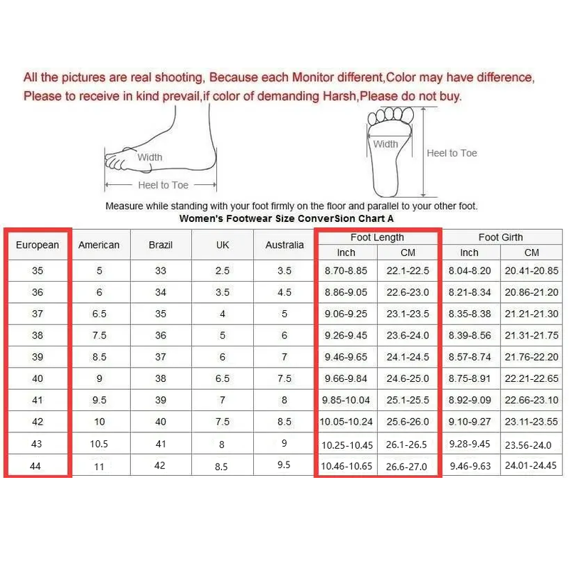 6 US = 36 EU=UK 3 -- Foot Length:22.6cm-23.0cm