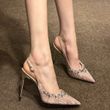 Women Sandals Summer Classic Champagne Banquet Wedding Shoes Women Sexy Rhinestone Satin Pointed Toe High Heels Sandals Women