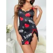 Women Sleepwear Nightgown Sexy Lingerie Love Printed Halter Backless Mini Dress Casual Pajamas Sleepshirts Nighties