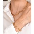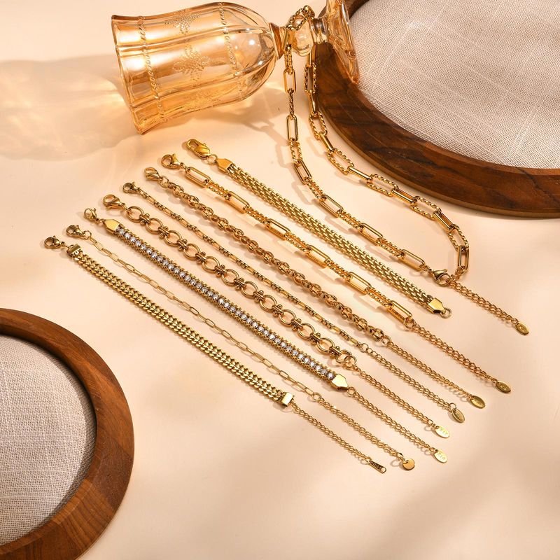 This women's stainless steel chain bracelet is plated with 18K gold, featuring an adjustable link and a trendy design.