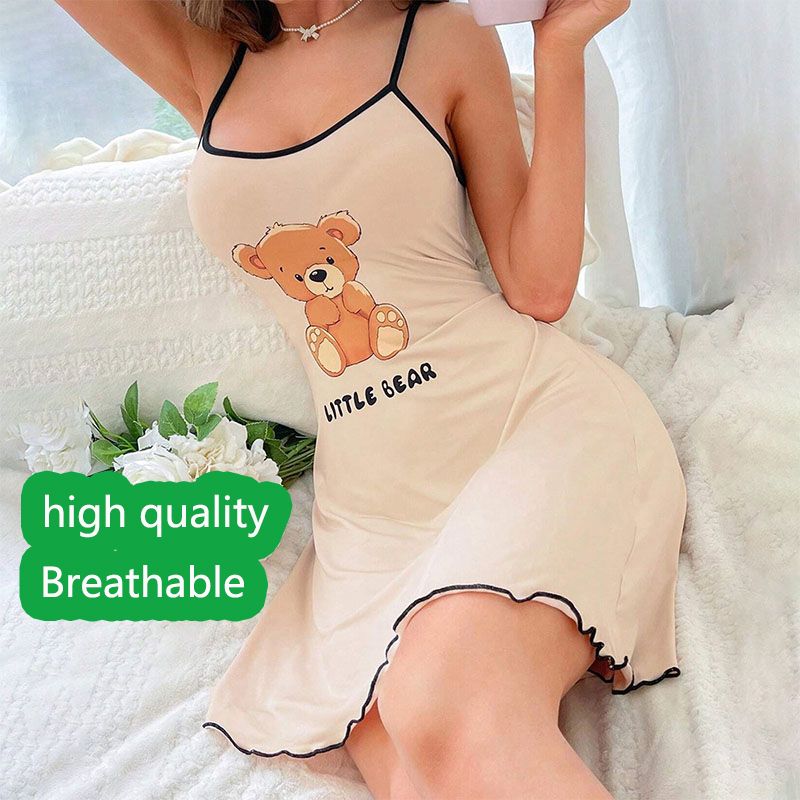 Women Suspender Skirt Ladies Short Skirt Comfortable Pajamas Leisure Homewear Sexy Outside Letters Bear Printed One-Piece-Dress