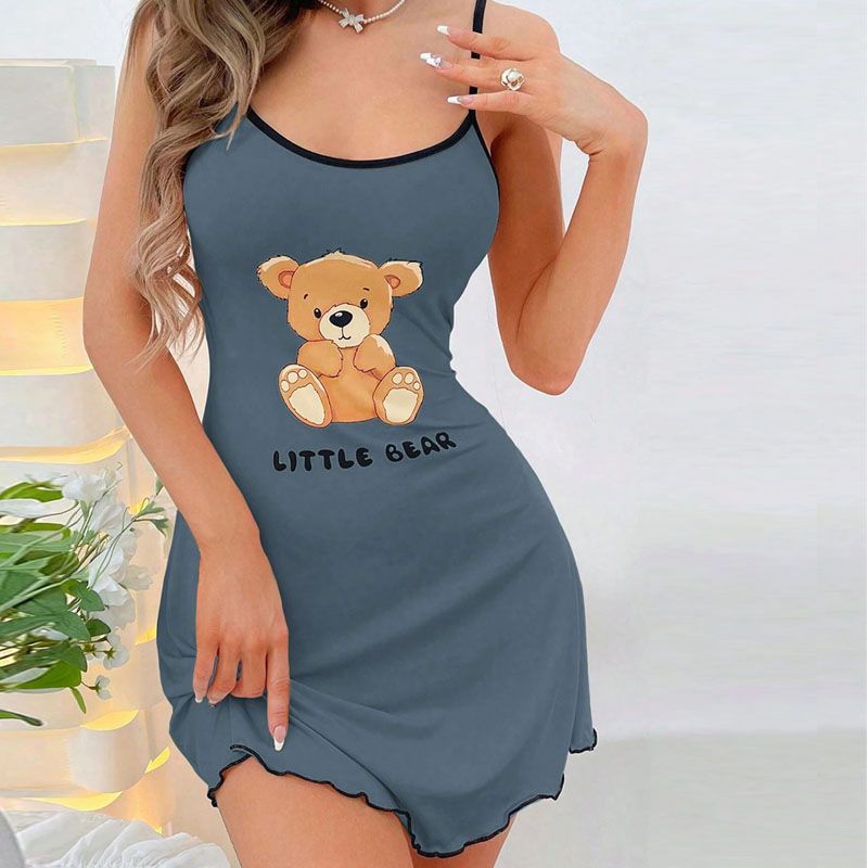 Women Suspender Skirt Ladies Short Skirt Comfortable Pajamas Leisure Homewear Sexy Outside Letters Bear Printed One-Piece-Dress