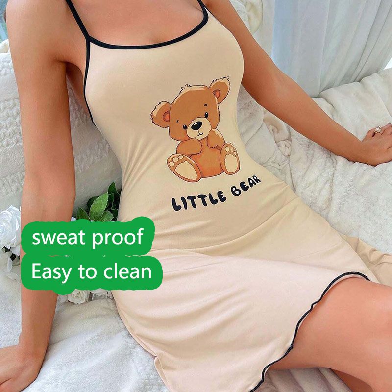 Women Suspender Skirt Ladies Short Skirt Comfortable Pajamas Leisure Homewear Sexy Outside Letters Bear Printed One-Piece-Dress