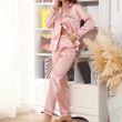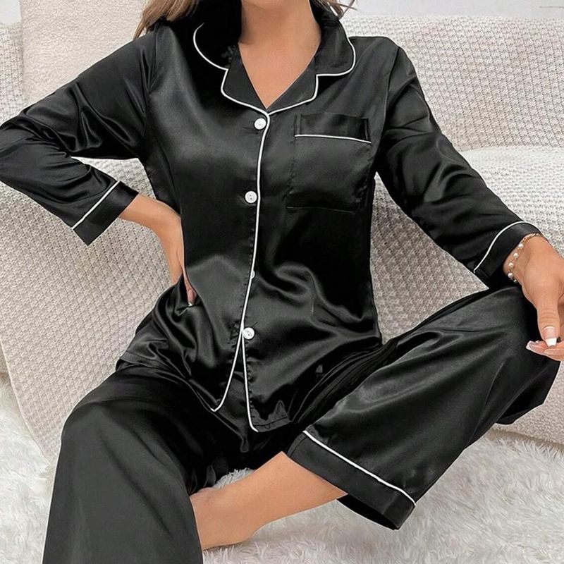 Women Two-piece Pajama Set Classic Design Sleepwear Elegant Women's Silk Pyjama Set with Long Sleeve Button Top Elastic for Home